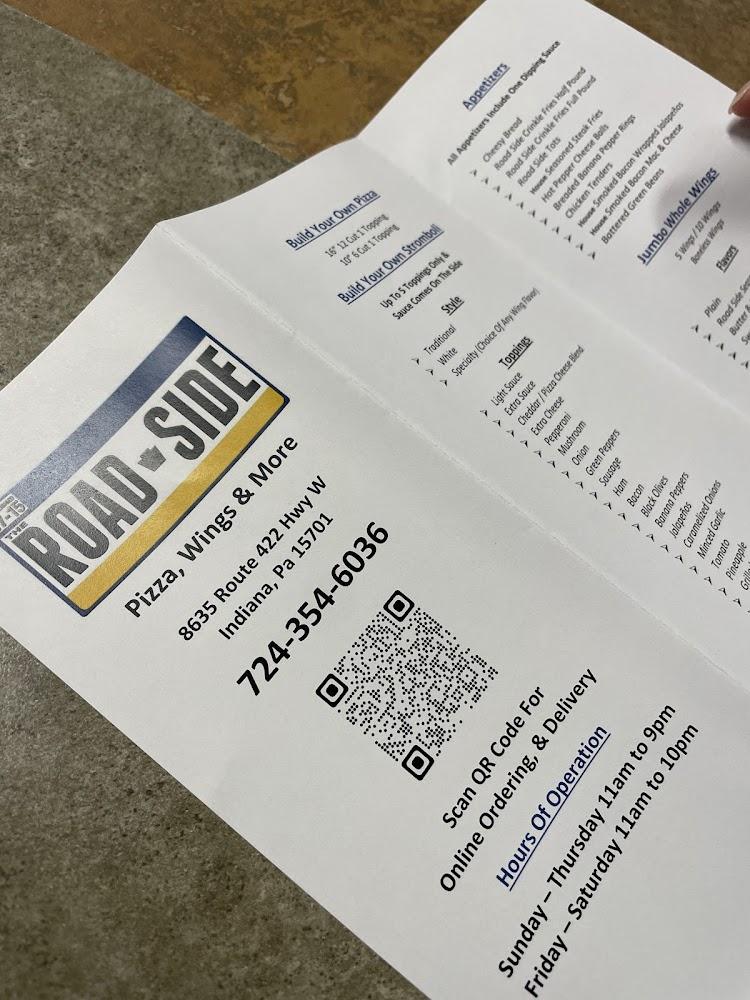 Welcome to The Road Side, your go-to destination in Indiana, PA for delightful dining. Located at 8635 US-422, our restaurant offers a relaxed atmosphere with a focus on local specialties and an impressive selection of beers. Whether you're stopping by for lunch, dinner, or a quick bite to eat, enjoy our outdoor terrace and convenient drive-thru service. We provide accessible facilities, ensuring a comfortable experience for all guests. Take advantage of our "happy hour" specials and savor delicious pizzas, shareable plates, and refreshing drinks. Join us for a memorable meal with family and friends and experience the best of comfort food in a welcoming setting.